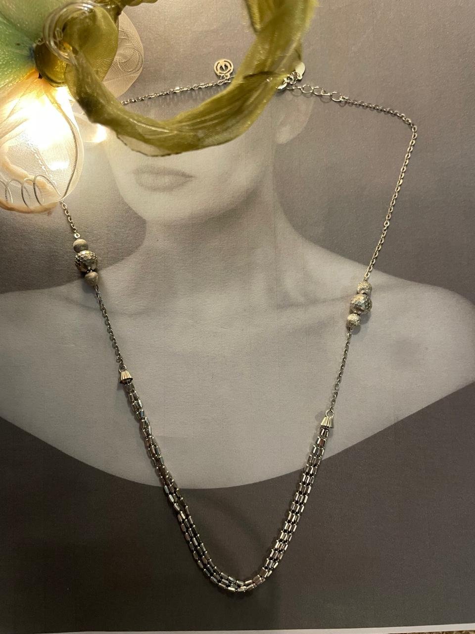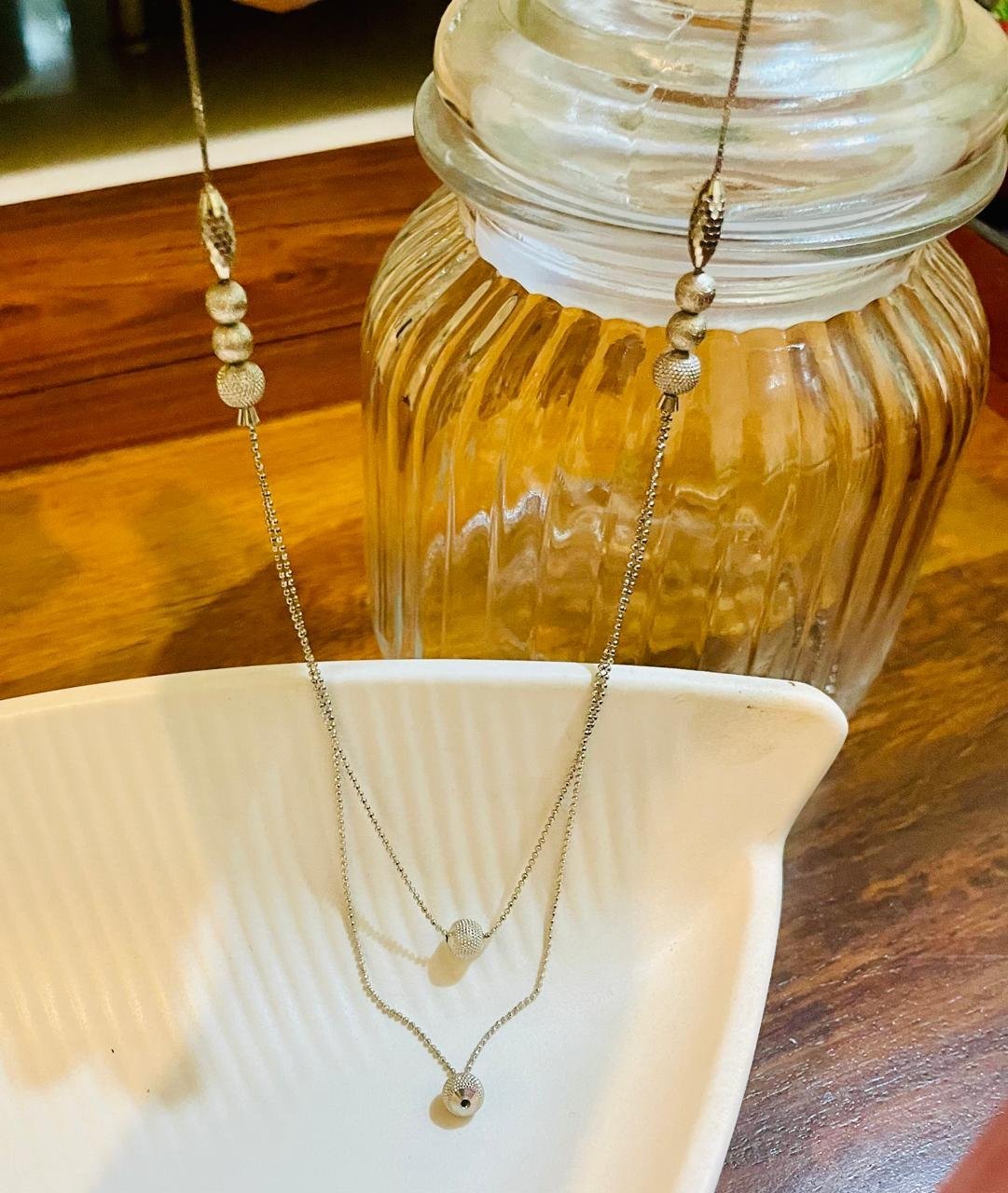 92.5 Sterling Silver Designer Layered Station Chain Necklace