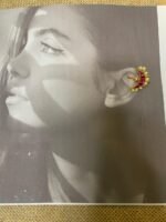 Add a pop of color with the Amara Handcrafted Jadau Bugadi Earrings. Featuring magenta stones and a stylish ear cuff, these designer earrings blend traditional jadau craftsmanship with contemporary flair. Perfect for weddings, festive occasions, or gifting.