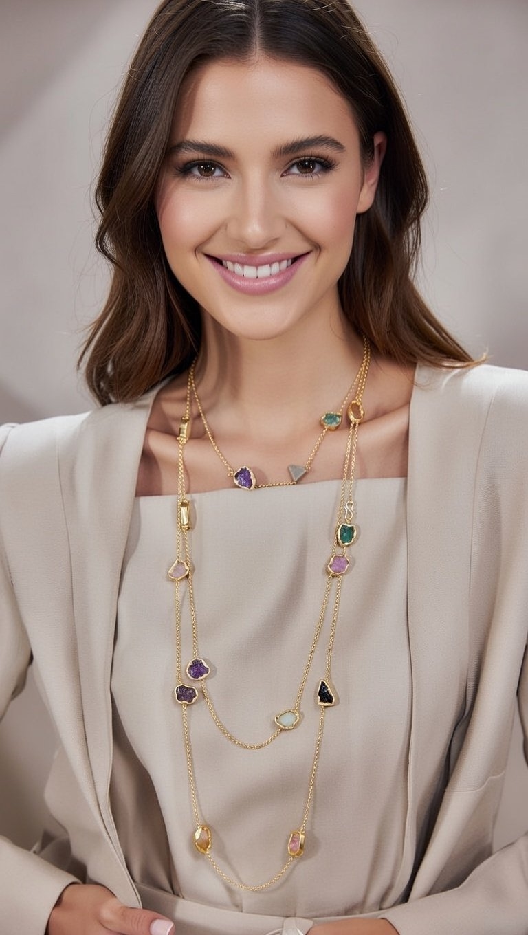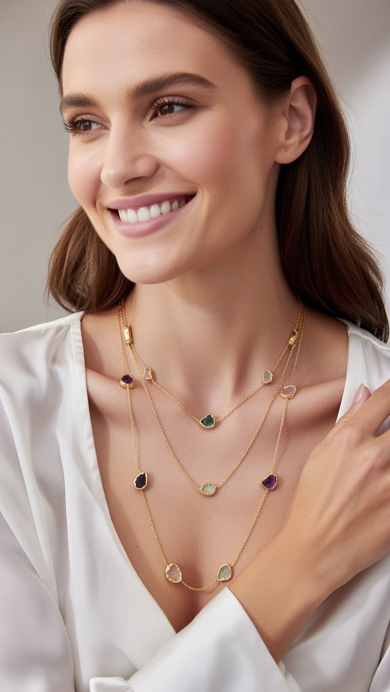 Home Exclusive Collection Celebrity glam Bellucci Semi-Precious Stone Layered Necklace