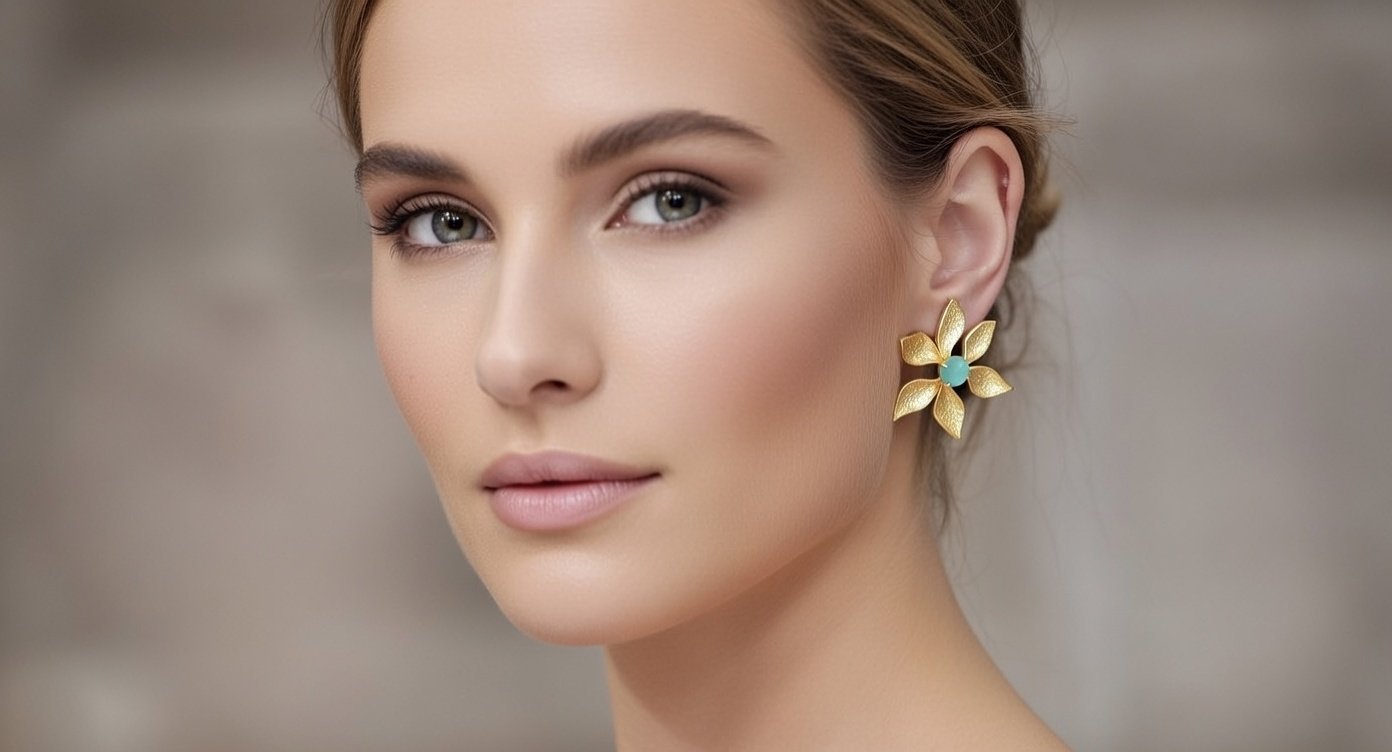 Home Exclusive Collection Work glint Bellucci Premium Gold-Plated Earrings with semi-precious stone