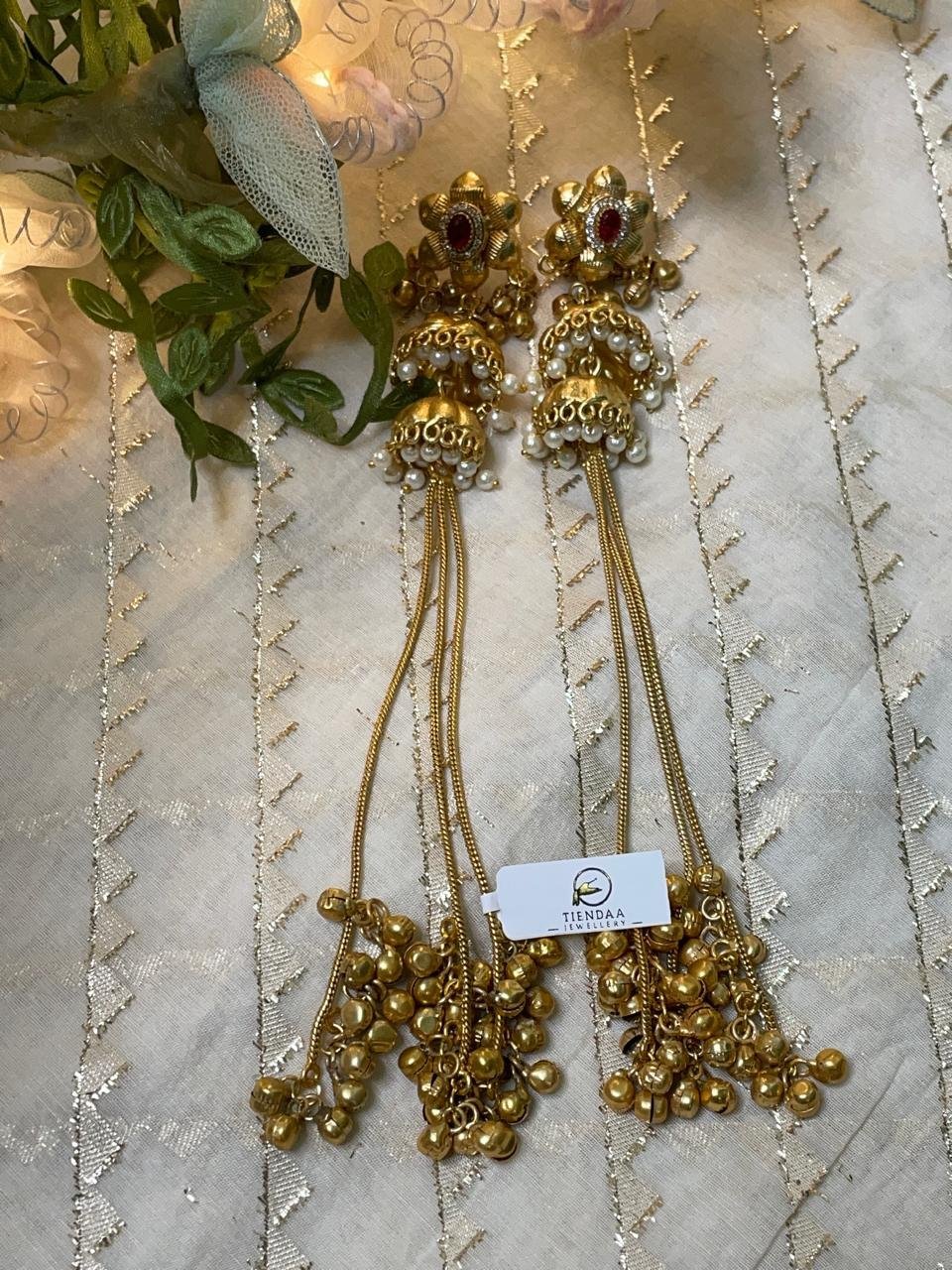 Home Exclusive Collection Celebrity glam Shahi Gold-plated Kashmiri Style Long Danglers