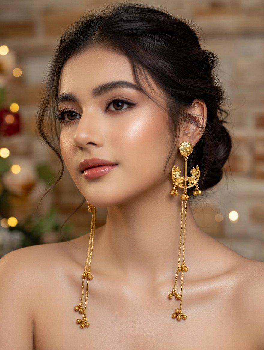 Home Exclusive Collection In Vogue Shahi Gold-plated Kashmiri Long Danglers